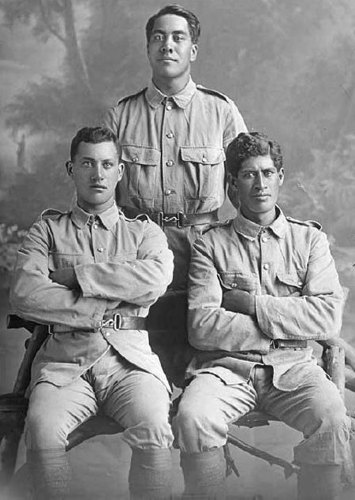 "3 Privates, PITAMA of the NZ Māori Pioneer Battalion. Wiremu Ata, Tiaka, & Te Kirikaihau"